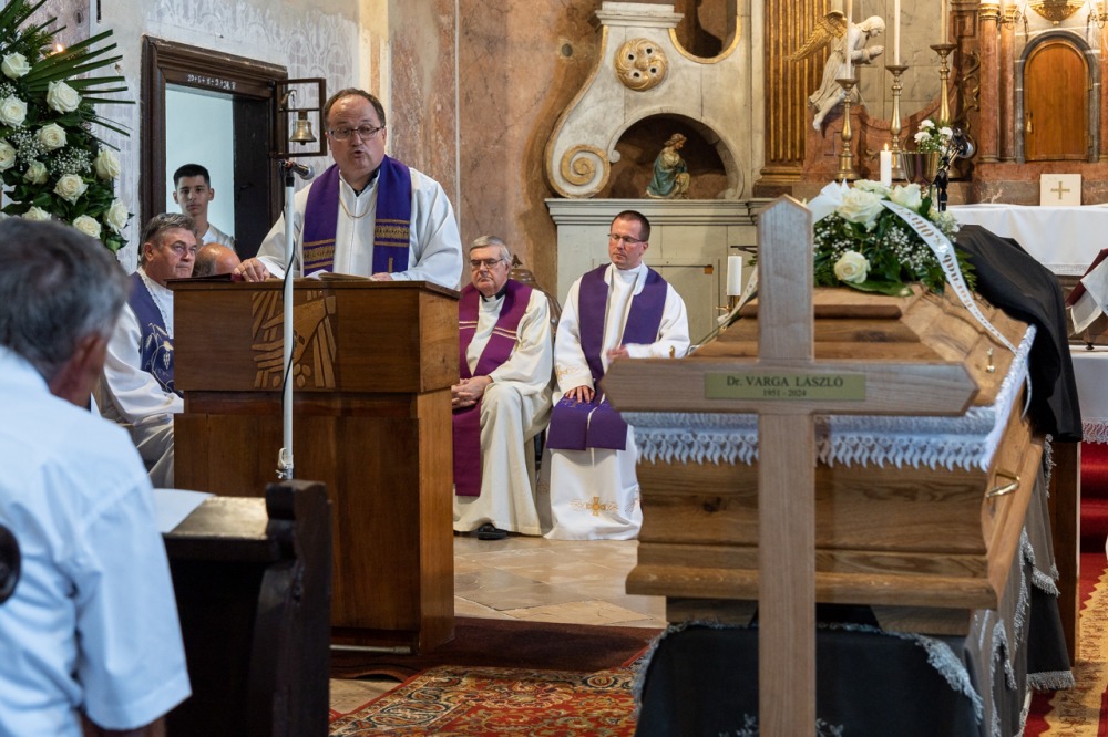 Az elhunyt lelki üdvéért celebrált engesztelő szentmisén az elhunyt korábbi tanítványa, Dohány Zoltán tb. kanonok, bicsérdi plébános mondott gyászbeszédet, számos személyes emlékkép és beszélgetések mozaikjain keresztül felvillantva Varga László atya életútjának egy-egy pillanatát.