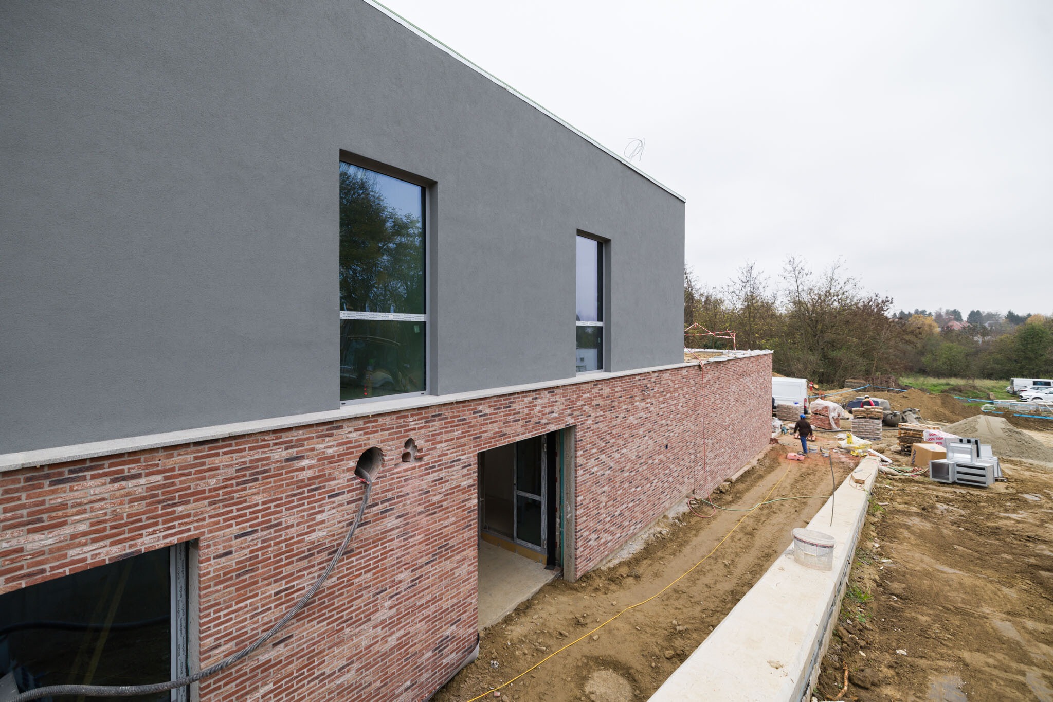 Az épület sávalapokra épült. A felmenő- és a födémszerkezetek a Leier előregyártott vasbeton kéregfalaiból, valamint körüreges födémpaneljeiből épültek meg. A projektvezető elmondta, kihívást jelentett a megfelelő organizáció kialakítása, hiszen figyelembe kellett venni a telek meredekségét, azt, hogy szűkös hely állt rendelkezésre az épület mellett a szerkezetépítéshez, amelyhez a Megrendelő által kiválasztott előregyártott Leier elemeket használták.